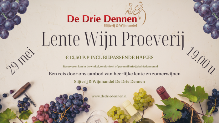 Op 29 mei laten wij u graag de lekkerste lente en zomerwijnen proeven.