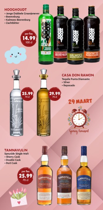 We krijgen weer langere dagen, mooier weer, vrolijke mensen en eerder wine o'clock! 28 op 29 maart gaan we weer een uurtje vooruit. En om de lente extra te vieren hebben wij weer heerlijke aanbiedingen!